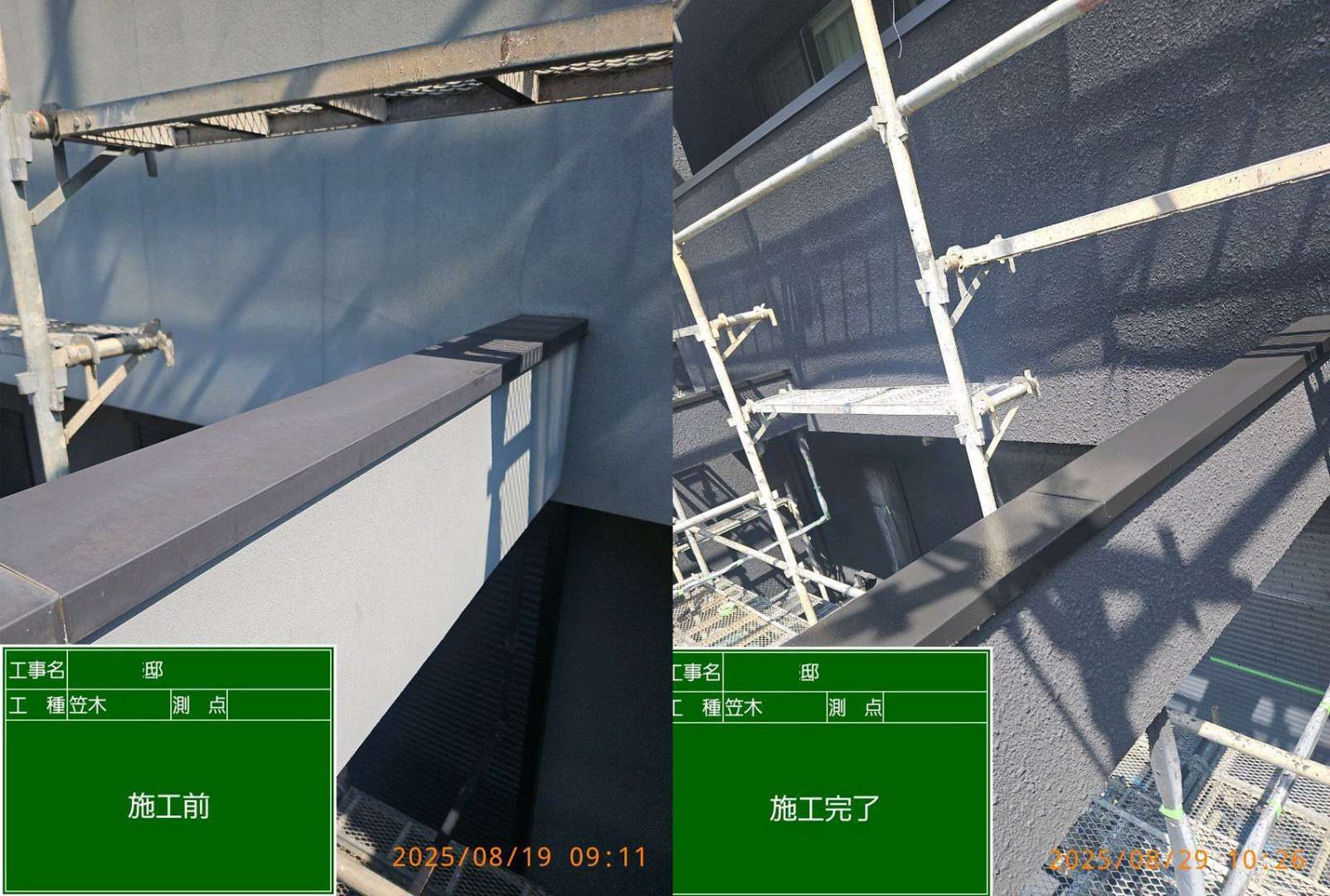 戸建て 吹き付け塗装 バルコニー防水 外壁塗装 立川市 外壁塗り替え工事 バルコニー防水工事 外壁の塗り替えとバルコニーの防水工事を施工いたしました。既存の外壁はリシン細目仕上げで細いヒビがたくさんできていました。新たに吹き付けで塗装、【スタッコ仕上げ】は模様が大きく、塗膜もボリュームがあり高級感と重厚感が出ます。色はダークグレー、かなり黒に近い色でモダンで美術館のようなイメージに仕上がっています。 場所 東京都立川市 施工内容 吹き付け/スタッコ仕上げ/外壁塗り替え/防水トップ 1 / 1 前の施工事例 戸建て 武蔵村山市 屋根・外壁塗り替え工事 バルコニー防水工事